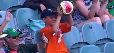 2. 搞笑氛围:视频中,小男孩一边吃瓜,一边比划,充满了搞笑的氛围。这种幽默的表现方式,让人忍不住笑出声来。
